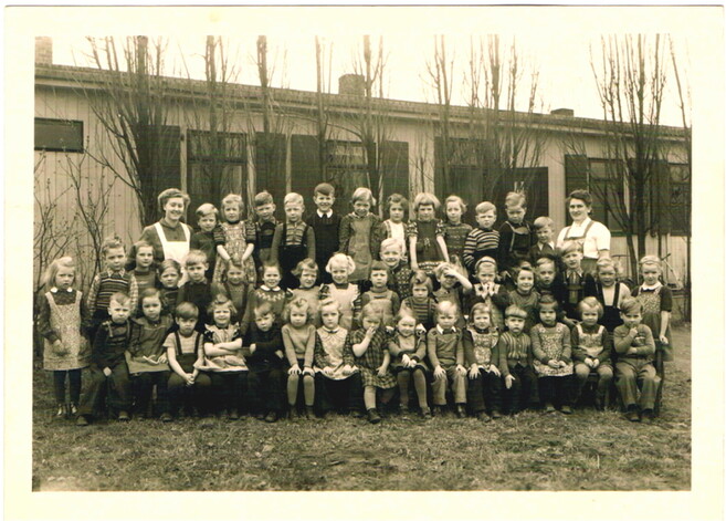 Kindergartenzeit, z. B. Vogelhochzeit, 1954.