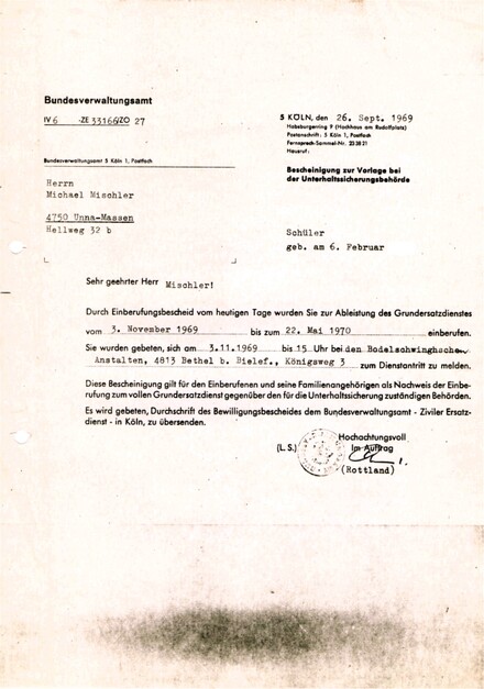 … um es abzukürzen: Die Anerkennung folgte ein paar Wochen später und der Schreiber dieser Zeilen leistete zivilen Ersatzdienst in Bethel, Haus Morija, konnte die „Kleine Krankenpflege“ ablegen. Klein war die in Bethel bestimmt nicht. Formte ihn, wahrscheinlich fürs Leben.