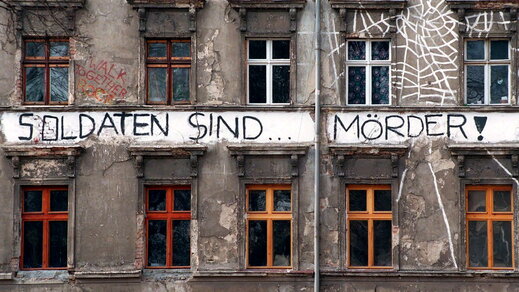 .„Da gab es vier Jahre lang ganze Quadratmeilen Landes, auf denen war der Mord obligatorisch, während er eine halbe Stunde davon entfernt ebenso streng verboten war. Sagte ich: Mord? Natürlich Mord. Soldaten sind Mörder." - Kurt Tucholsky-